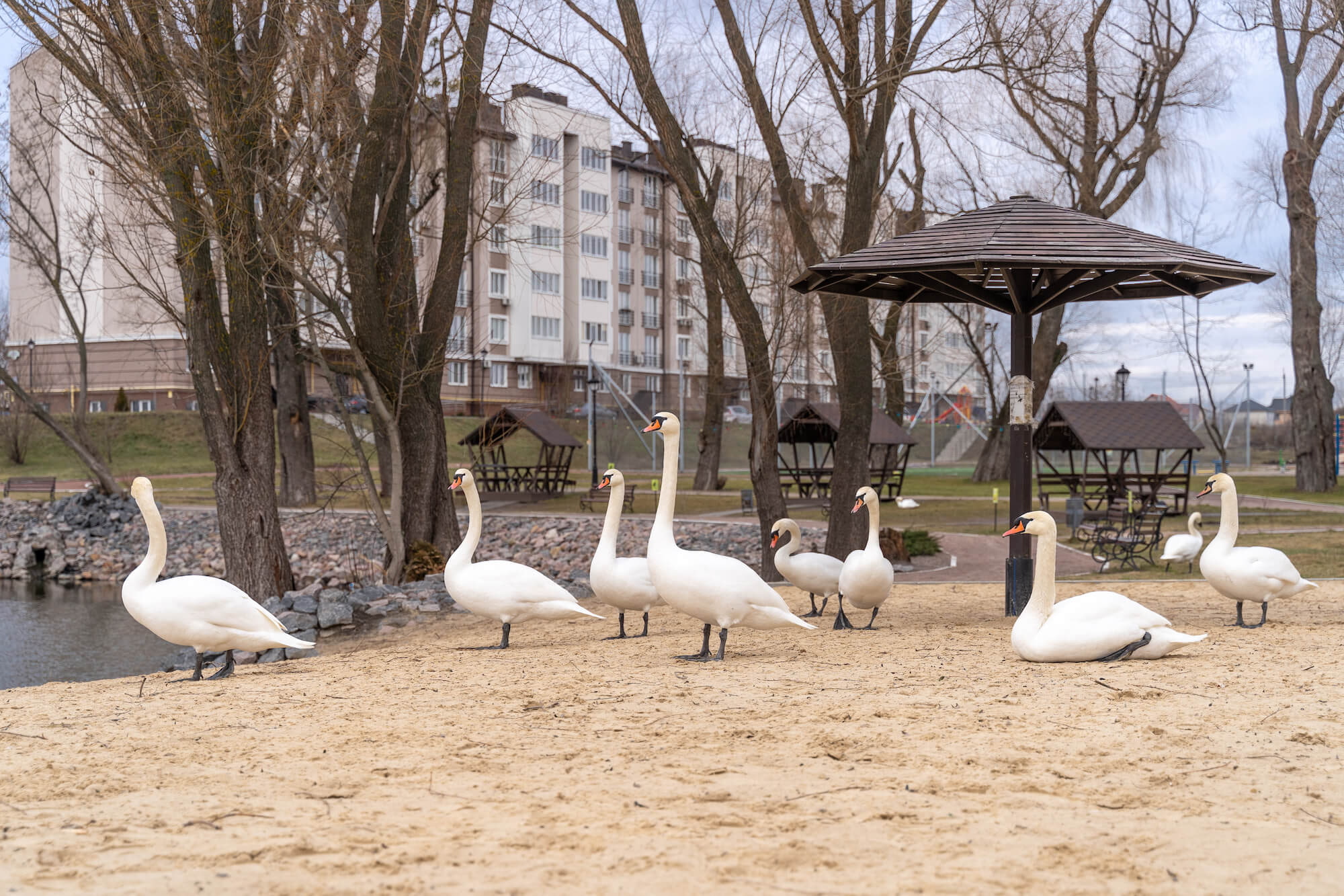Unity with nature is what the inhabitants of both large cities and small towns want. So we made sure that the residents of our complexes in the capital Poznyaky and in the village of Gatny had access to clean water. The embankments and beaches of Korolyok Lake near the Prychal 8 residential complex and the lakes on the territory of the Ozerny Gai Hatne residential complex were equipped by the company. And in Gatny ponds have become a cozy home for swans.
