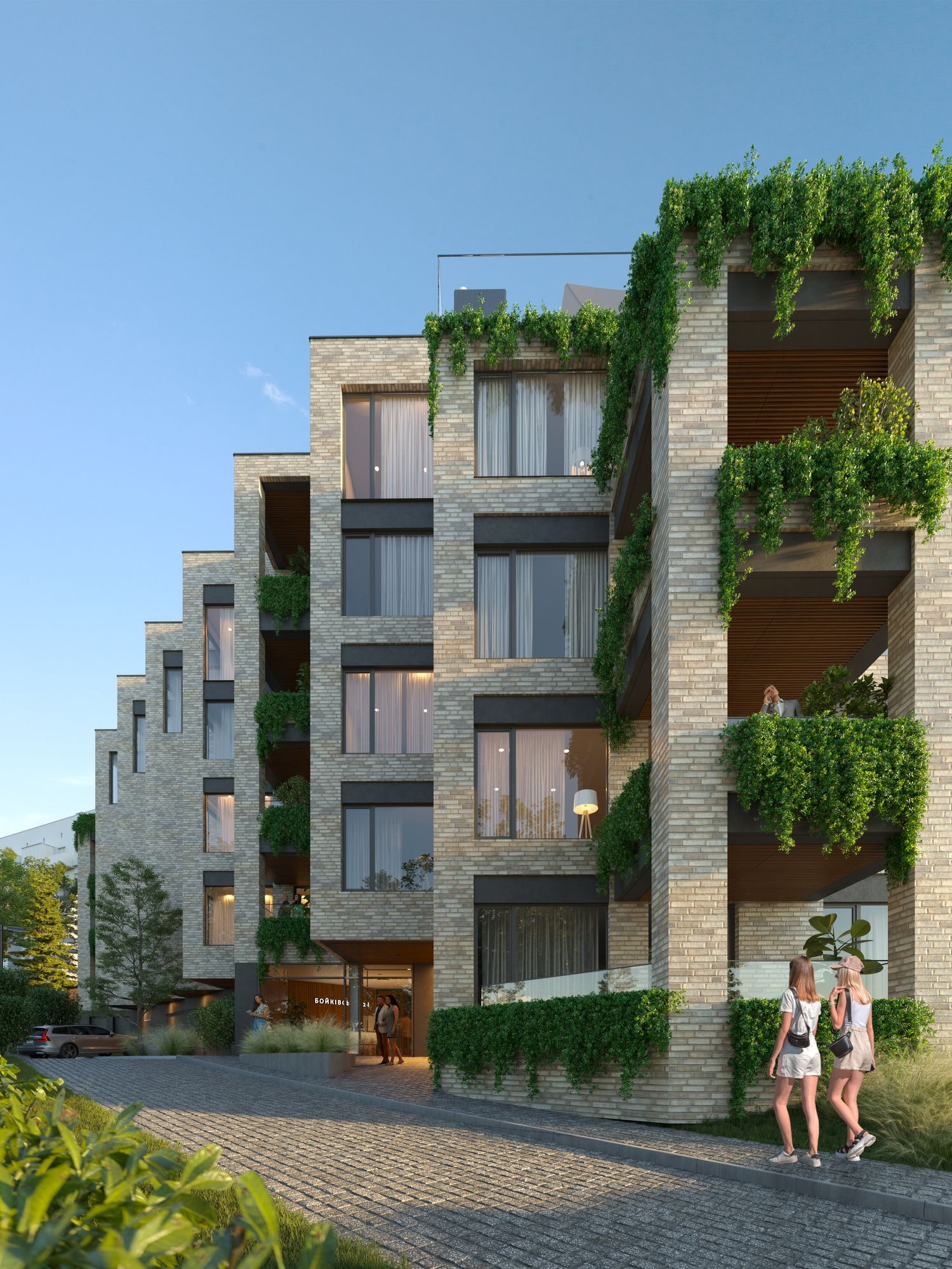 Сучасні лінії фасаду гармонійно поєднуються з класичними елементами, створюючи образ, який буде актуальним десятиліттями.