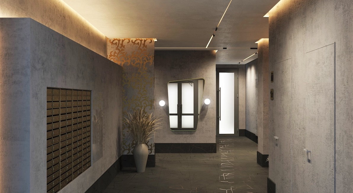 Розкішні вестибюлі зустрічатимуть резидентів та гостей комплексу витонченою атмосферою. Авторський дизайн та стильне оформлення інтер‘єру стануть візитною карткою вашої оселі.