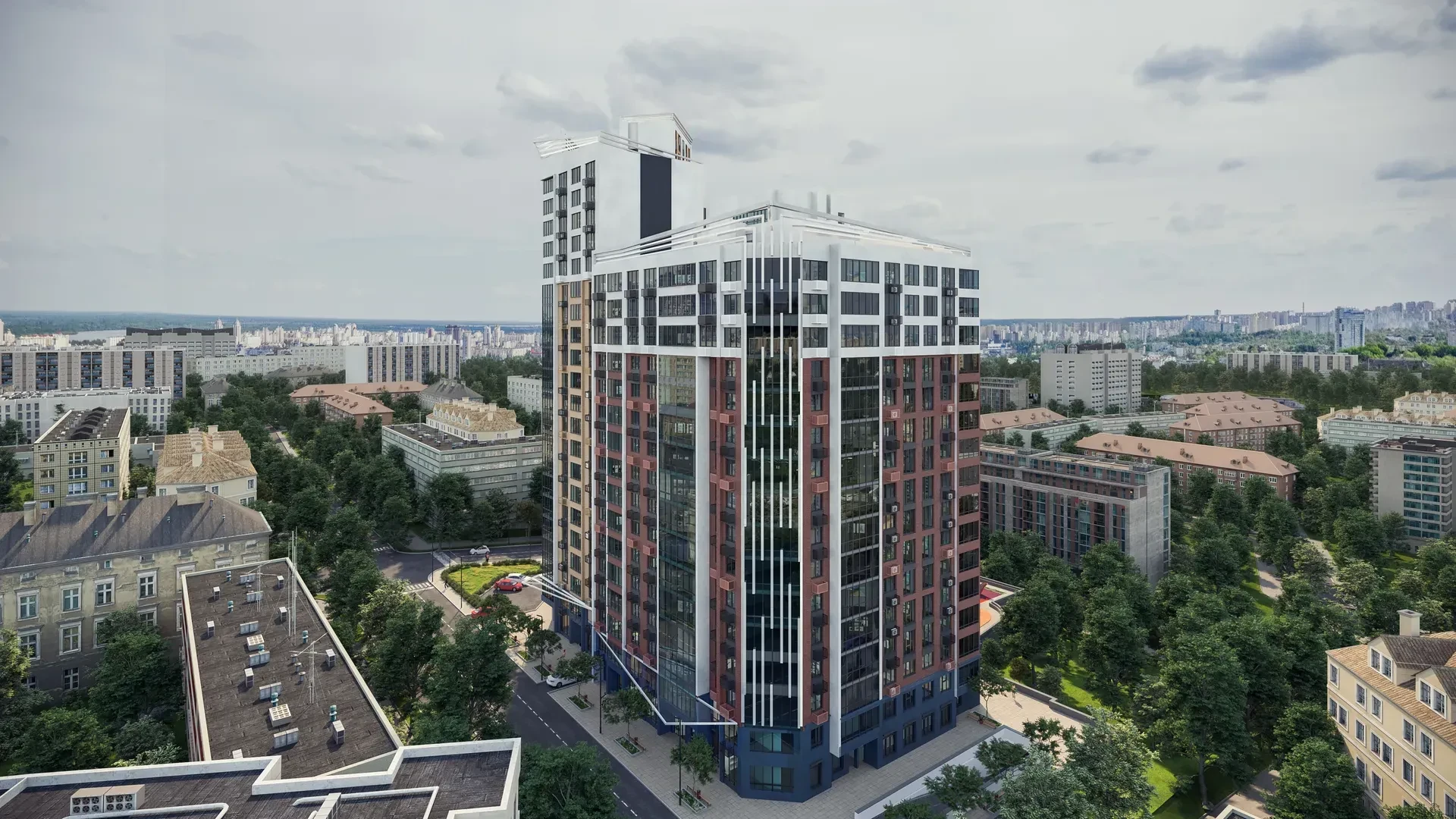 Будинок з трьох секцiй iз власним пiдземним паркінгом органічно вписується у вже сформовану архiтектуру історичної частини Києва i вiдповiдає високим вимогам сучасного житла.