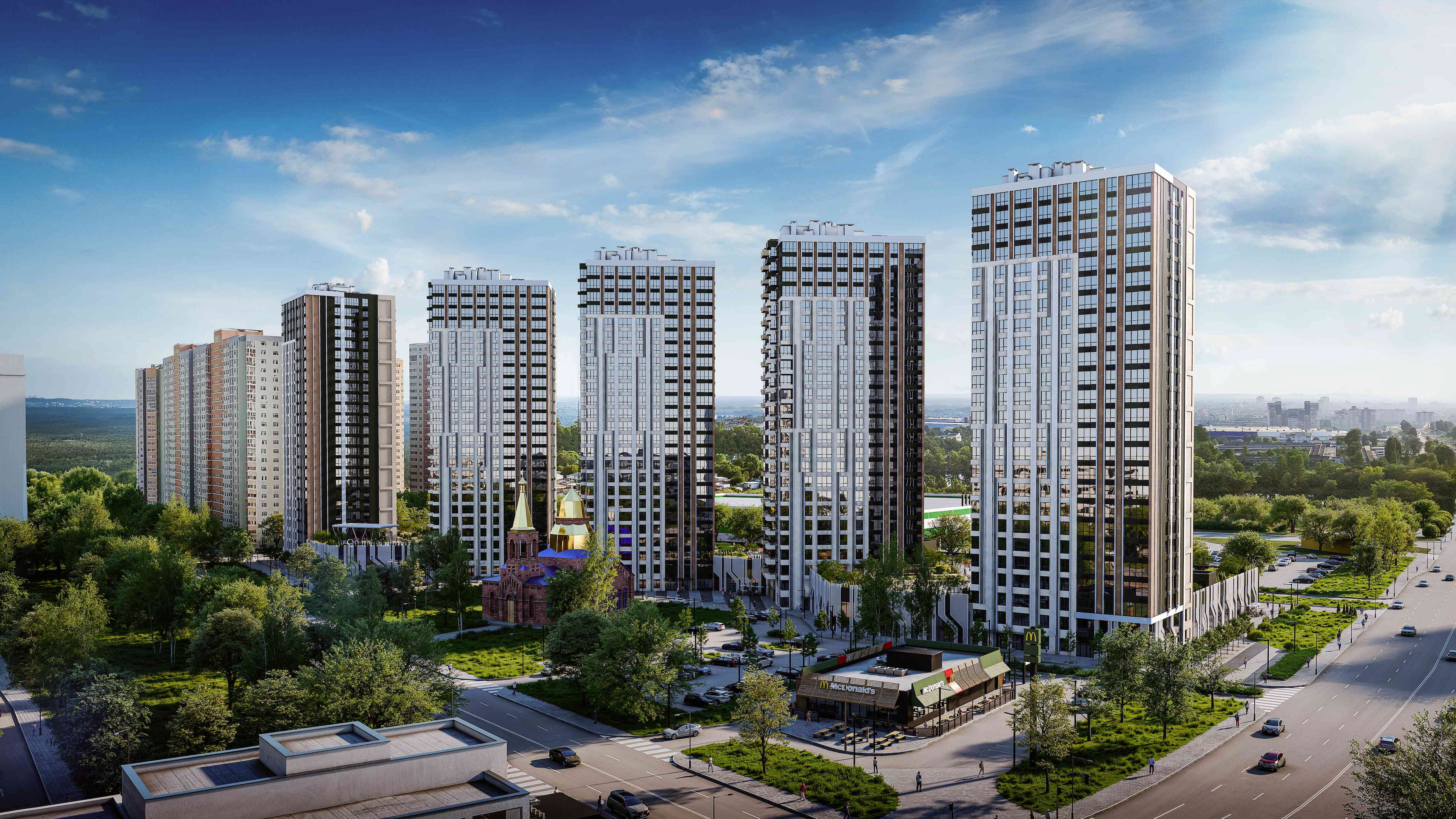Поруч — Пуща-Водиця з лісами, озерами й веломаршрутами. Неподалік — озеро Міністерське, де можна відпочивати, рибалити чи просто гуляти. Сусідство з лісом Виноградаря забезпечує чисте повітря і тишу — ідеальне середовище для життя.