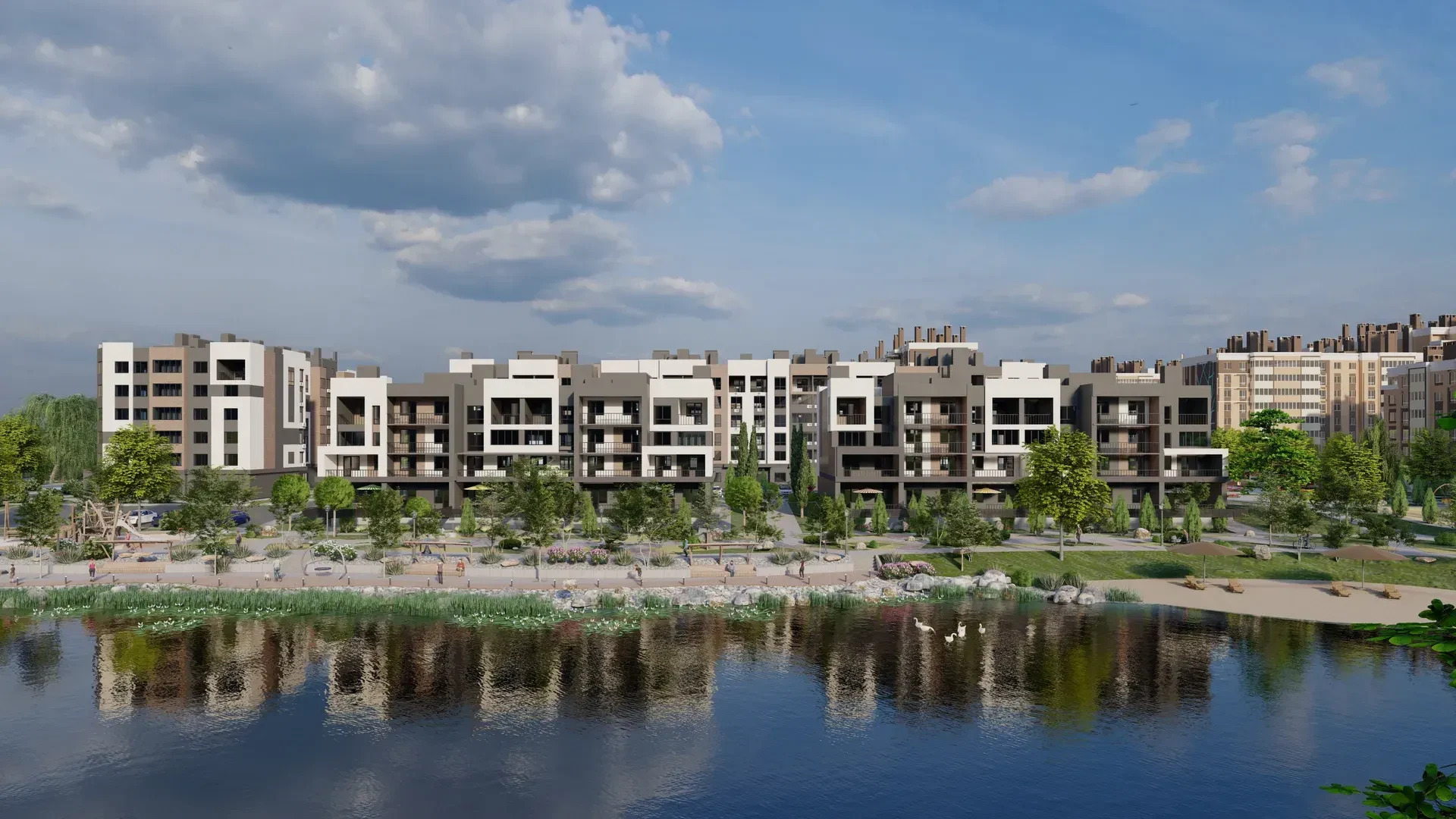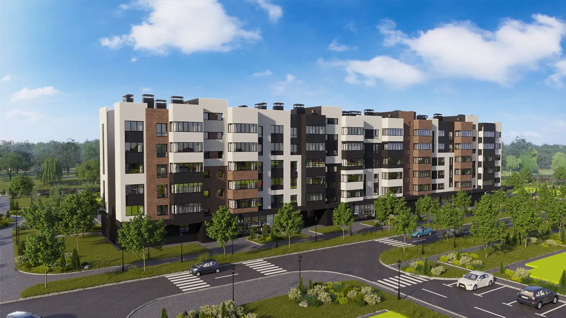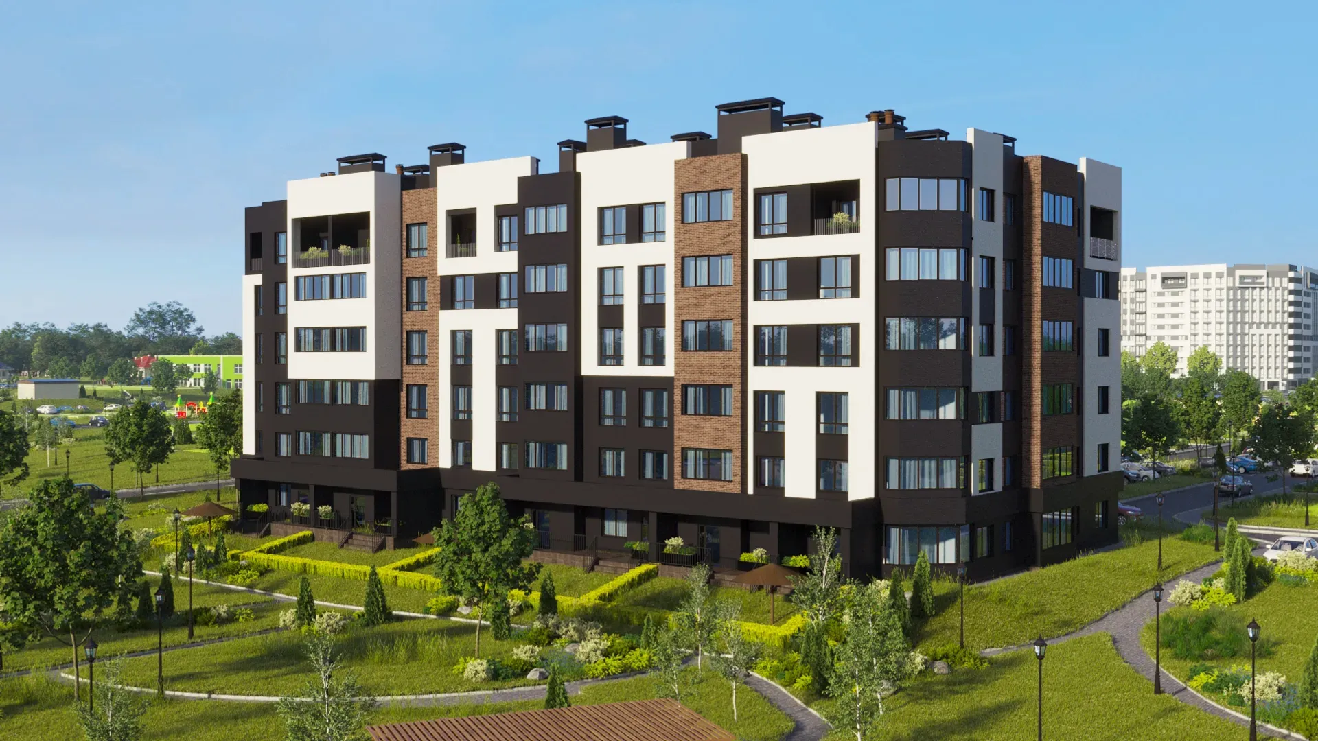 Комплекс имеет закрытую территорию, поэтому можно не беспокоиться о безопасности автомобиля или имущества, а дети смогут играть на улице, наслаждаясь счастливым детством!