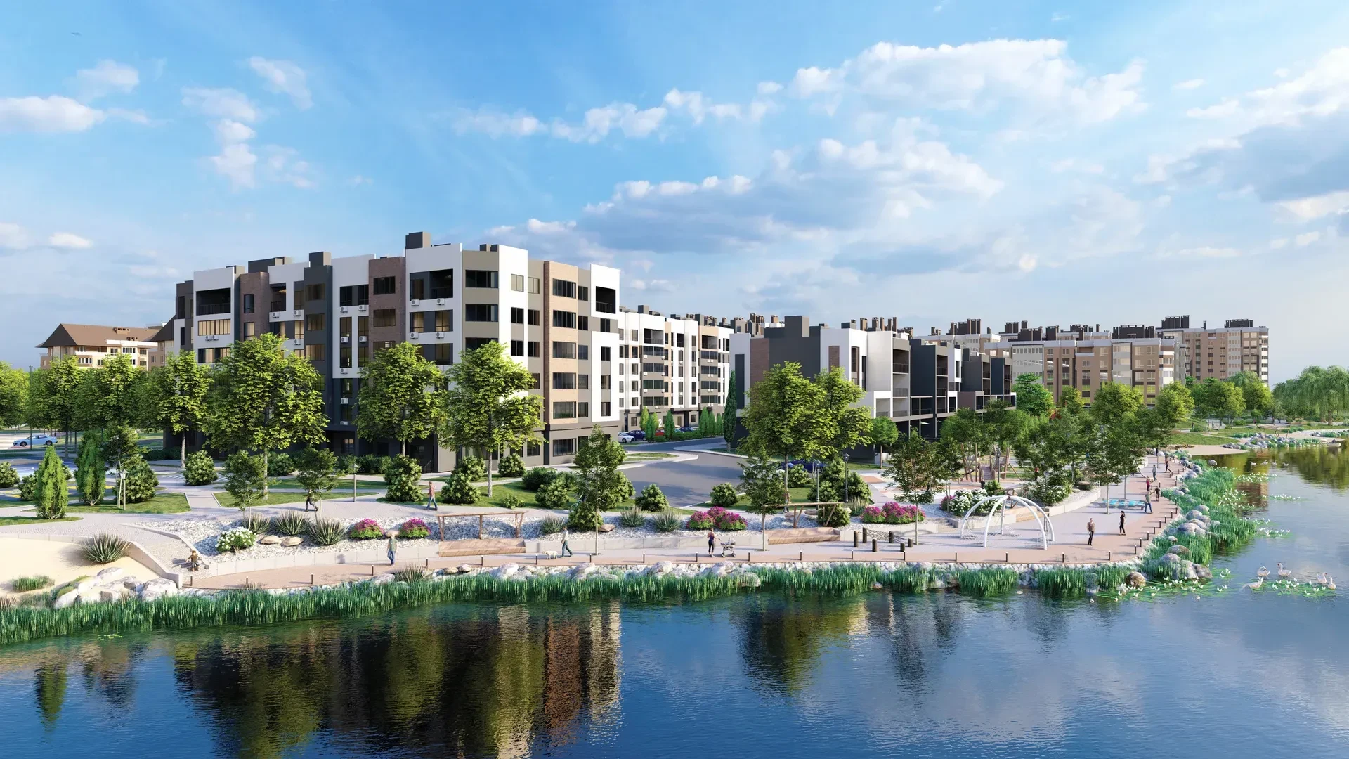 На территории комплекса предусмотрено все для комфортной жизни: супермаркет NOVUS, медицинская клиника, кафе и ресторан.